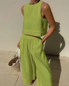 This summer linen two-piece set for women offers the perfect combination of comfort and chic style. Made from lightweight linen, it keeps you cool while providing a relaxed yet polished look for any casual occasion or sunny day outing.