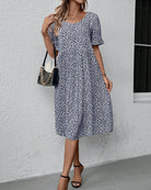 This Floral Midi Dress for women offers a perfect blend of softness and style. With a round neckline, short ruffled sleeves, and a gathered skirt just below the bust, it creates a flattering silhouette. The drapey fabric enhances its flowy feel, making it a comfortable yet chic choice for any occasion.