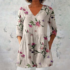 This floral V-neck blouse is the perfect blend of elegance and comfort, designed to flatter every figure. The gathered waist adds definition, while the three-quarter sleeves and soft floral print offer timeless charm. Ideal for casual days or dressier occasions.