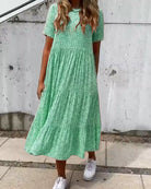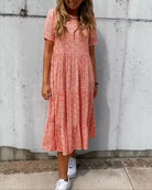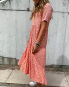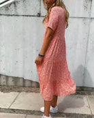 This casual dress is designed for comfort and versatility, perfect for any laid-back occasion. Made from soft, breathable fabric, it offers a relaxed fit that moves with you, making it ideal for warm weather or casual outings.
