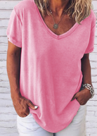 This V-neck T-shirt combines simplicity with timeless appeal, offering the perfect base for any outfit. Its clean design and versatile silhouette make it an essential piece for your daily wardrobe.