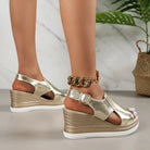 These Wedge Sandals for women combine a slightly high wedge sole with a stylish cut-out design, offering a chic look that is both comfortable and fashionable. The smooth, shiny straps add an elegant touch, making these sandals perfect for various occasions. A great choice for those who want to blend ease and style effortlessly.