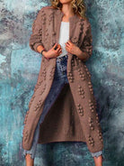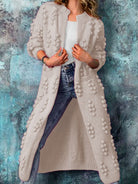 Women's Long Winter Cardigan with Knit Bobble Pattern